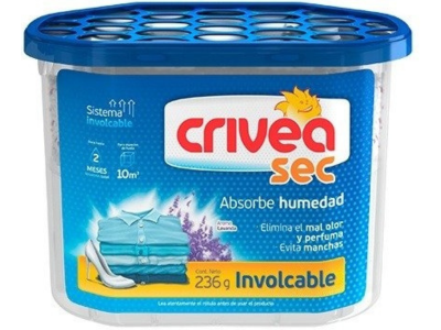 El Pote Involcable Crivea absorbe la humedad del aire y la deposita convertida en agua, en la parte inferior del recipiente. Su diseño exclusivo, evita derrames. Elimina la humedad en espacios cerrados de hasta 10m³, ayudando a prevenir la formación de hongos, oxidación y malos olores.