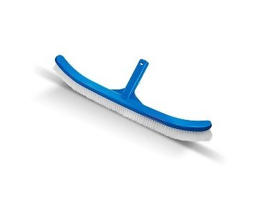 Cepillo curvo Vulcano. Cuerpo plástico de 46 cm de largo y 4 hileras de cerdas de polipropileno; utilizado para limpieza de paredes en piscinas pintadas y revestidas.