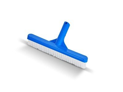 Cepillo recto Vulcano. Cuerpo plástico de 29 cm de largo y 4 hileras de cerdas de polipropileno; utilizado para limpieza de paredes en piscinas pintadas y revestidas.
