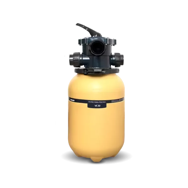 Filtro VC-10 Vulcano de ø290 mm para piscinas de hasta 20.000 litros. Diseñado para eliminar las impurezas (mayores a 20 µ) que llegan al agua por medio del viento, lluvia o el uso. Fabricado por soplado en una sola pieza con materiales de alta resistencia a la corrosión, este equipo garantiza una larga vida útil con óptimo funcionamiento.