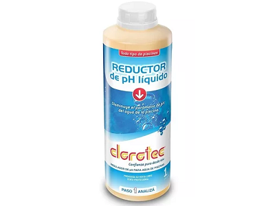 El Reductor de PH Líquido Clorotec® disminuye el parámetro de PH del agua de la piscina.